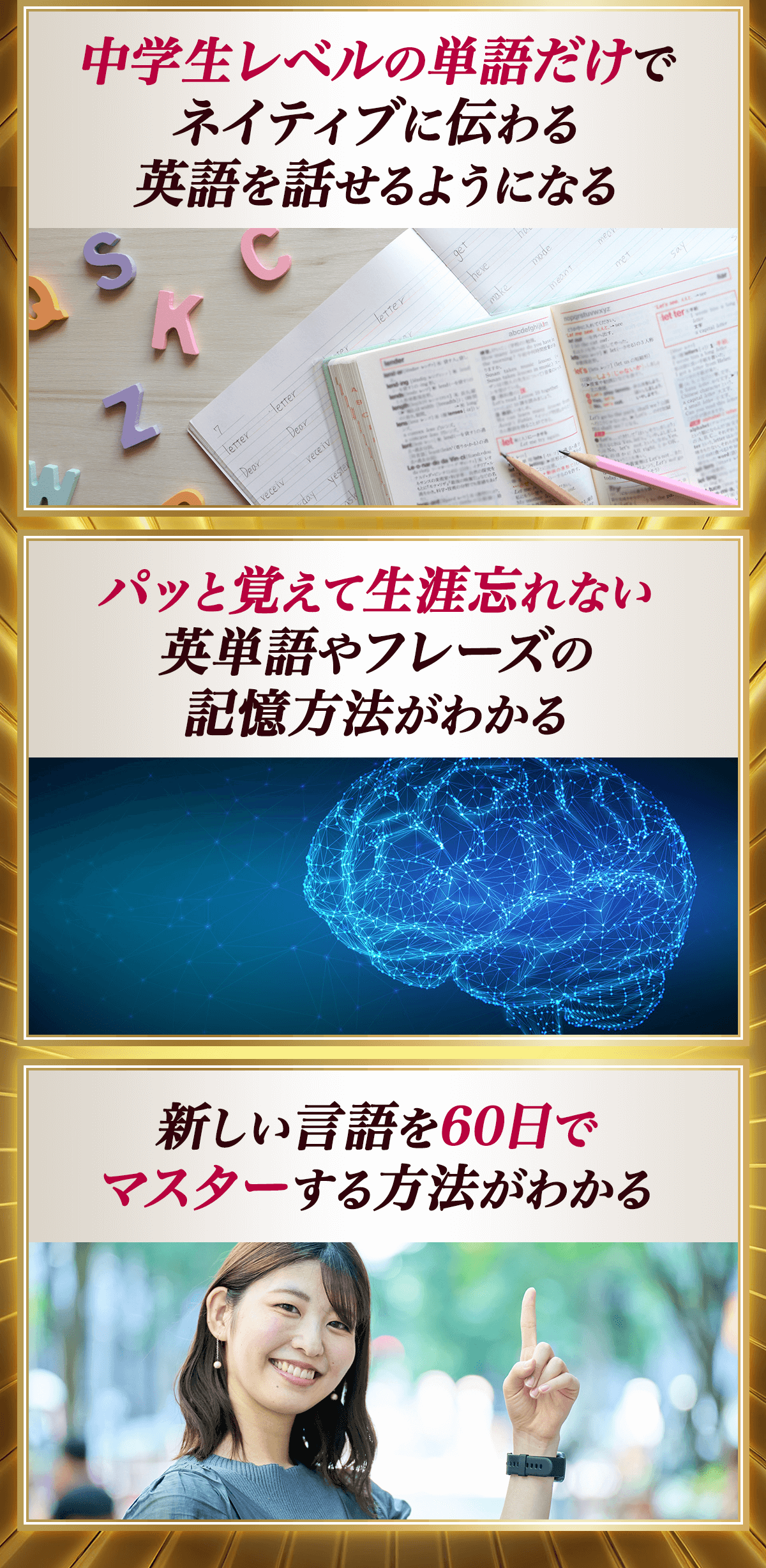 この方法を使えば、1日に100単語、200単語と圧倒的なスピードで記憶でき、しかも生涯忘れることがなくなります。